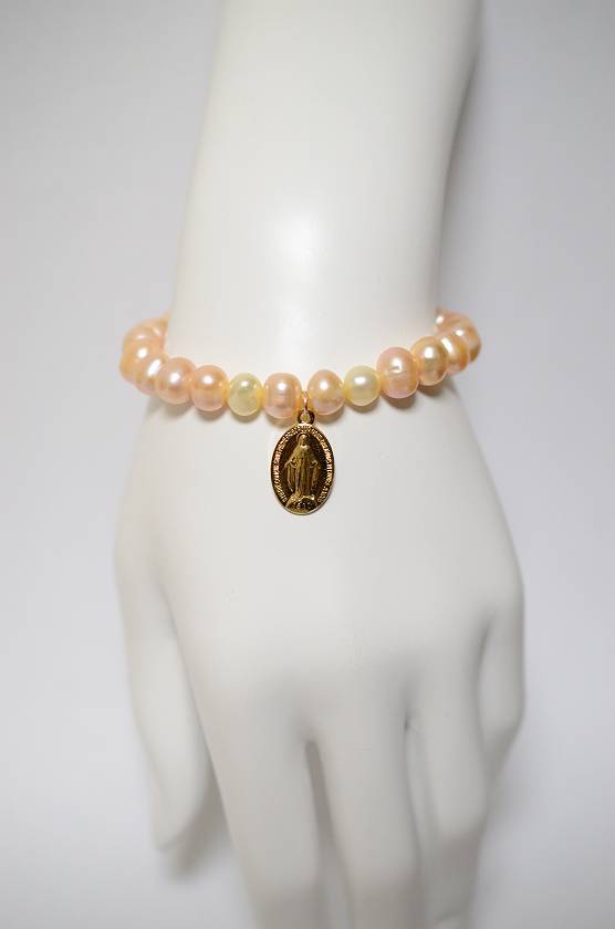 素材:淡水真珠・14K Gold filled・教会のメダル